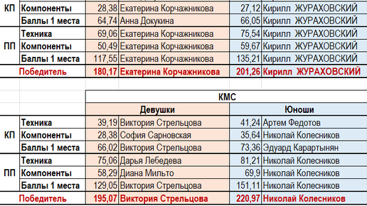 Немного о турнире Рабер. Турнир большой, общий массив сегодня почти 10 часов, много видов, но внутри самих видов много, как всегда, разного уровня выступающих. Наглядный пример - 1 сп девочек, где по КП чёткий водораздел на две половины, причём разница между первой 6-кой и второй - 11 баллов и почти 10 по технике. Интересное формирование состава... 1спортивный , девочки Выиграла Анна Докукина, но мне больше понравилась Чистякова. Летом её тренер анонсировал работу над 4Т, 4S и 3А, судя по физической готовности, она может штурмовать такие вершины...