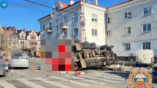 В Калининграде грузовик перевернулся после столкновения с двумя авто