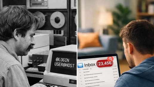 Вчера племянник жаловался: «Дед, у меня 247 непрочитанных писем в почте! Спам, рассылки, уведомления... Ненавижу email!» Я усмехнулся: «Первое email было простым: "QWERTYUIOP". И никакого спама». Он удивился: «QWERTYUIOP? Это было первое письмо?» Я кивнул: «Да. 1971 год. Рэй Томлинсон отправил себе тестовое сообщение между двумя компьютерами. Набрал первую строку клавиатуры — и всё. Никаких "Уважаемый получатель", никаких подписей. Просто проверка, что система работает». Племянник: «А символ @? Кто придумал user@host?» Я встал...