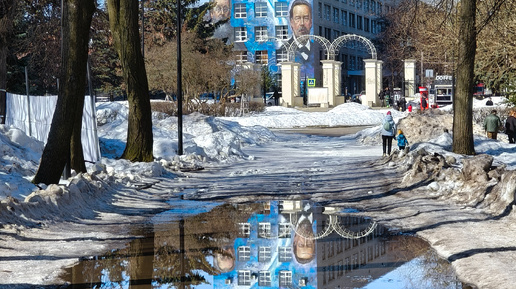Альма-матер. Правда я поступала в институт, заканчивала - академию, а теперь это университет. Лабораторный корпус. Попов и Циолковский.