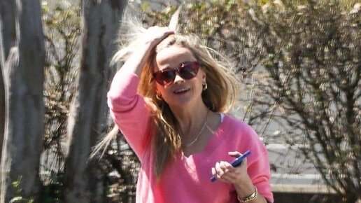 Голливудская актриса появилась в безупречном женственном образе. Риз Уизерспун надела свободный V-образный свитер в модном розовом оттенке и укороченные белые брюки прямого кроя. Дополнили стильный выход знаменитости...