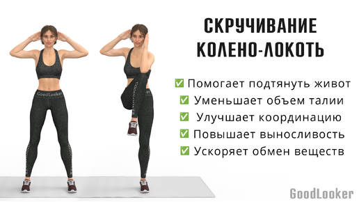 Скручивание колено-локоть: упражнение для пресса, талии и похудения🔥