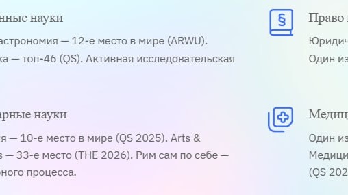 Sapienza University of Rome — основана в 1303 году. Более 100 000 студентов, 11 факультетов, свыше 300 программ. 128-е место в мире (QS 2026), 3-е среди итальянских университетов. По физике — 12-е место в мире (ARWU), по праву — 43-е (QS 2025), по археологии — 10-е (QS 2025). Базовый tuition — €2 821–€2 924 в год. Реальная сумма зависит от ISEE. При наличии DSU-гранта tuition покрывается полностью. Обязательная регистрация через universitaly.it — первый шаг для всех non-EU студентов. Без завершённой регистрации поступление невозможно...