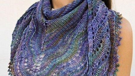 Шаль спицами «Холден». Красивая шаль, вязанная спицами. Можно связать как из однотонной пряжи, так и из секционно окрашенной. Описание http://moipetelki.ru/blog/accessories/shal-spicami-xolden/ #шаль спицами...
