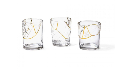 Кинцуги - это японское искусство, уходящее корнями далеко в прошлое. Согласно его философии, осколки разбитой посуды с помощью специального лака с добавлением золота или других драгоценных металлов обретают новую жизнь, а ценность предмета значительно возрастает. При рассмотрении деталей собранного заново предмета можно заметить совершенно различные формы, сочетающиеся в единое целое. Работы в этой технике иногда бывают собраны из осколков разной посуды, чтобы изделие получилось совершенно другим и объединило в себе красоту и шарм, например, нескольких чашек или ваз...