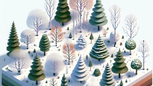 ** Знаете, зимой лес кажется таким... одинаковым. Все деревья стоят голые, и кажется, что отличить одно от другого невозможно. Но это только на первый взгляд! На самом деле, каждое дерево зимой — как человек без верхней одежды: у каждого свой силуэт, своя кора, особое расположение ветвей. Береза, например, сразу узнается по белой коре, а дуб — по мощным раскидистым ветвям. Ели и сосны, конечно, выделяются своей зеленью, но и среди лиственных есть свои "зимние секреты"...