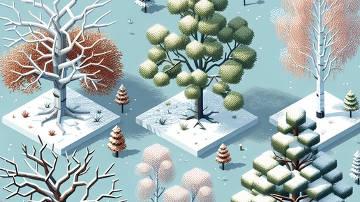 ?** Кажется, зимой все деревья одинаковые — голые ветки, серые силуэты. Но это только на первый взгляд! На самом деле каждое дерево сохраняет свою индивидуальность даже без листвы. Присмотритесь: у дуба мощные, корявые ветви и толстая потрескавшаяся кора. Береза сразу узнается по белой коре с черными штрихами. Клён держит ветки прямо и уверенно, а у липы они более изящные...
