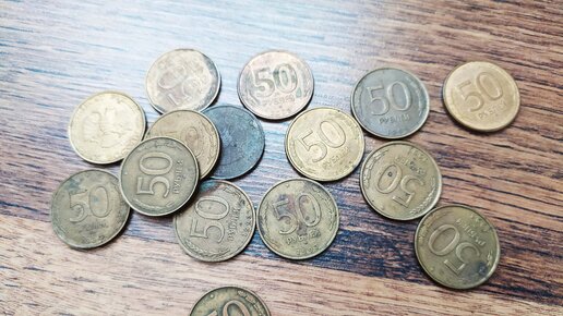Среди монеток значительное количество занимают монеты номиналом 50 рублей, датированные 1993 годом...