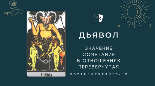 Поговорим о комбинации Дьявол Таро с другими картами, а также о том, что они вам скажут. Дьявол Таро: Значение. Прямое положение Таро Дьявол. Перевернутое положение Дьявол Таро: Значение в отношениях. Прямое положение Карта Таро Дьявол в отношениях...