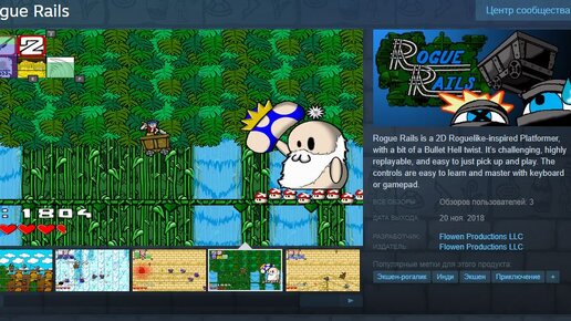 Rogue Rails - простенький 2D платформер. Вышла игра в 2018 году, и совсем не давно стала доступна бесплатно.
