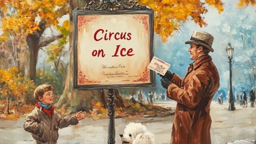 «Сегодня будет цирк на льду!» - Вздыхаю, глядя на афишу. А я туда не попаду И представленье не увижу... Набрякли тучи в вышине, И дождь опять закрапал в парке. Тут дядя с пуделем ко мне Подходит: «Хочешь контрамарки?» - Спасибо! - говорю. - Но нет. Не собираю марки, братцы. А он...