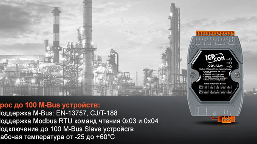 Компания ICP Das выпустила новый шлюз GW-7828, который позволяет считывать данные со 100 m-bus устройств и конвертировать их в протокол Modbus RTU.