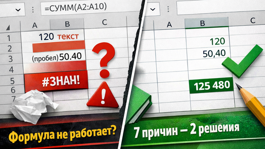 Формула работает у коллеги, но ломается у тебя: 7 реальных причин и пошаговая диагностика. Разбор 7 реальных причин, почему формула считает у коллеги и ломается у вас: текст вместо числа, пробелы, формат, разделители, ссылки. Пошаговая диагностика + файл для практики. В прошлых сериях мы говорили о типичных ошибках формул. Вот ссылки на первые статьи каждой серии: Теперь — другой уровень. Одна и та же таблица. дин и тот же файл. У коллеги — всё считает. У вас — ошибка или странный результат. Это не магия...