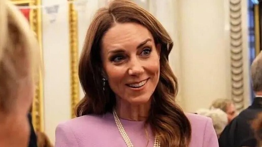 Кейт Миддлтон в лиловом платье и с ожерельем покойной королевы Елизаветы II посетила прием в Букингемском дворце