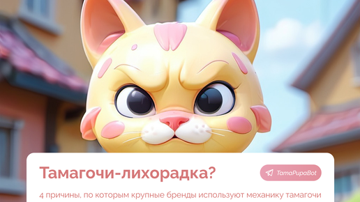 Привет, я Алеша - создатель бесплатного Телеграм-тамагочи с образовательными квизами TamaPupaBot. Недавно я заметил, что тамагочи “выходят” не только у инди-разработчиков, но и у крупных брендов. Сегодня я хочу поразмышлять о том, почему такие гиганты как Газпромбанк и Золотое яблоко используют тамагочи для продвижения своих брендов и зачем им эти игры. Использование механики тамагочи позволяет брендам создавать инновационные и привлекательные маркетинговые кампании, которые усиливают связь с потребителями и способствуют росту бизнеса...