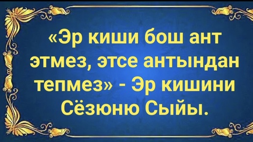 Нарт сёзле.«Эр киши бош ант этмез, этсе антындан тепмез» - Эр кишини Сёзюню Сыйы.
