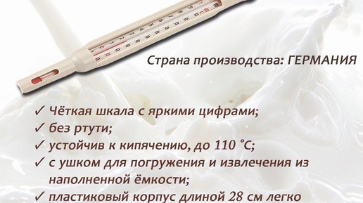 В продаже термометр для молока и сыра Kerbl, который предназначен для точного определения температуры при переработке молока и сыроварении