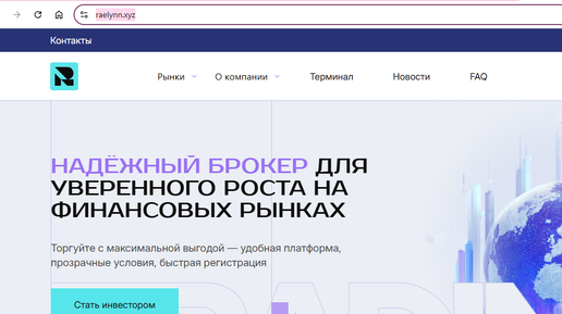 Raelynn.xyz / Ra-lynn.me позиционирует себя как инвестиционного брокера, но при рассмотрении этот проект демонстрирует признаки недобросовестного проекта. Главный инструмент привлечения клиентов у Ra-lynn - обещание фантастической прибыли. Вам предлагают 20-40% дохода ежемесячно. Задумайтесь: даже 20% в месяц — это 500% годовых. Такую доходность не дают ни облигации федерального займа, ни депозиты системно значимых банков, ни даже высокорисковые биржевые инструменты. Ни один легальный брокер, управляющий реальными активами, не станет давать подобных гарантий...