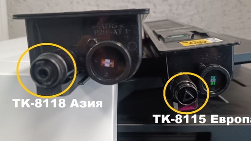 МФУ Kyocera M8124cidn Азия. Картриджи TK-8115 для нашего работать не будут, т.к. на борту картриджи для азиатского рынка TK-8118. Отличия: привод картриджа и чип Заранее не не было известно, что аппарат для Азиатского рынка и купили комплект картриджей TK-8115. Как...
