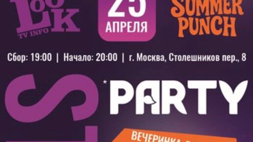 ! Готовы зажечь? 🔥 LOOK TV INFO совместно с баром Summer Punch приглашает вас на эксклюзивную STAFF PARTY в самом сердце города! Это будет не просто вечеринка, а настоящий эпицентр стиля, музыки и новых знакомств. Мы собираем лучших из лучших — «своих» — чтобы создать незабываемую атмосферу и оторваться на полную! Что вас ждёт на STAFF PARTY? ⭐️ Звёздные гости: Популярные блогеры и медиа-лица России и СНГ. 🍹 Эксклюзивное меню: Специальные угощения и, конечно, великолепный пунш от Summer Punch...