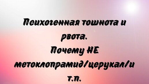 Что такое вообще тошнота и рвота? Это попытка организма избавиться от того, что его отравляет. Этот симптом бывает при любой интоксикации: как при пищевом отравлении, так и при заболеваниях внутренних органов. Но отравиться можно не только токсинами. Интоксикация бывает и от негативной информации. И в этом случае организм пытается помочь - как может. Он с помощью рвоты пытается раздренировать "гнойник" (очаги скрытого напряжения), который его отравляет. И просто "закрутить краник" с помощью противорвотных препаратов типа метоклопрамида/церукала и т...