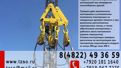 Траверса — быстросъёмное грузозахватное приспособление, используемое на подъёмных кранах для работы с различными типами грузов. Являются промежуточным звеном между крюком крана и грузом. Позволяет избежать повреждений груза при его перемещении...