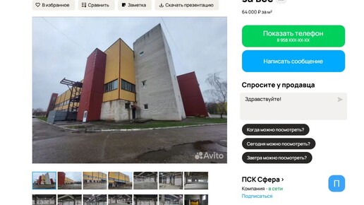 В Воронеже выставили на продажу производственно-складской комплекс по адресу: улица Урывского, 6Б. Цена составила 1,6 миллиарда рублей. Объявление появилось на портале "Авито". Общая площадь объекта составляет 25 тысяч квадратных метров. При этом сам продавец характеризует предложение как «большое пустое здание» с офисным блоком на 3 тысячи «квадратов». Комплекс размещается на земельном участке площадью 2 гектара...