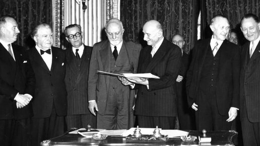 75 лет назад, 18 апреля 1951 года, в Париже история была одновременно подхлёстнута вперёд и повёрнута вспять. Именно в тот день шесть государств — Франция, Западная Германия, Италия, Бельгия, Нидерланды и Люксембург — подписали Парижский договор о создании Европейского объединения угля и стали. Так на свет появилась организация, которую совершенно справедливо называют зародышем нынешнего Евросоюза. Словом, насчёт того, что историю тогда подхлестнули вперёд, двух мнений быть не может — с 1951 года...