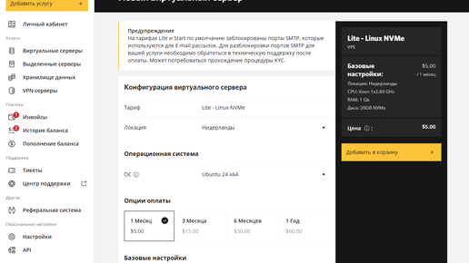 Показываю на примере хостинга is*hosting, который базируется в Эстонии, но при этом отлично подходит для тех, кто в России. Вы можете выбрать любой хостинг, где можно купить виртуальный сервер с локацией не в РФ, в моем случае я выбрал Нидерланды. Протокол ВПН будем использовать vless - самый приватный способ подключения на сегодня. Регистрируемся по ссылке. Далее пополняем баланс на 5$ = ~500 руб минимум (можно оплачивать картой РФ). Далее жмем Добавить услугу → Виртуальные серверы → Выбираем самый...