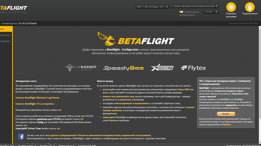 Betaflight Configurator — это официальное графическое приложение для настройки полетных контроллеров с прошивкой Betaflight. Оно позволяет гибко конфигурировать параметры дрона без необходимости использования командной строки (CLI), хотя CLI также доступен для продвинутых пользователей. Основные возможности: 1. Подключение Поддерживает подключение через USB (UART) или Bluetooth (если контроллер имеет модуль). 2. Настройка Полетных Режимов 3. Настройка PID и Фильтров 4. Настройка Receiver (Приемника) 5...