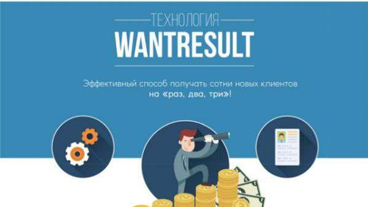 WantResult очередные мошенники открывшие франшизу. Продавая её тем у кого скопился небольшой запас денег. И ищут варианты как деньги не потерять и приумножить.