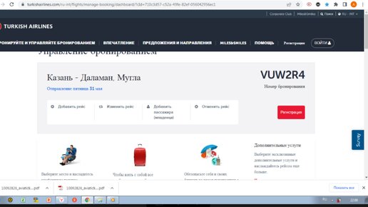 Переходим на сайт https://www.turkishairlines.com/ru-int выбираем вкладку "Бронируйте и управляйте бронированием" , а далее "Управление бронированием" или же можно с самого начала перейти на эту страницу по прямой ссылке - - https://www.turkishairlines.com/ru-int/flights/manage-booking/ Вставляем из ваших документов номер билета и фамилию пассажира Мы попадаем на бронь нашего заказа - нажимаем "Регистрация" Здесь можно добавить до 9 пассажиров для поиска. Вводим на каждого человека номер билета и фамилию...