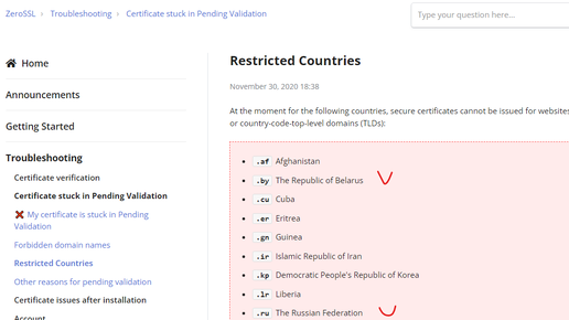 Бесплатный SSL сертификат в зоне RU и зоне BY 2022г под санкциями