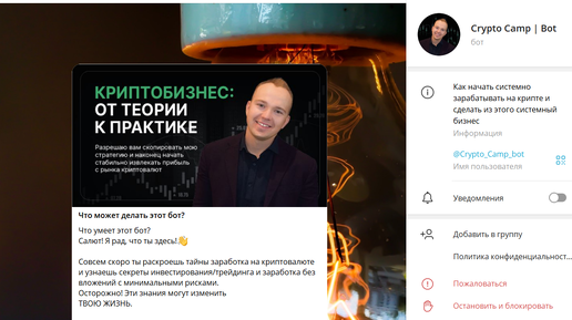 Crypto Camp | Bot — отзывы и разбор: заработок на автомате или уловка для потерь?