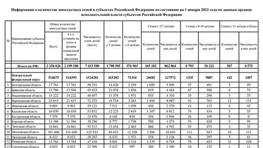 Сколько многодетных семей в России на 2023 год? Статистика по регионам.