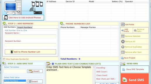 Android Bulk SMS Sender упрощает массовую рассылку SMS с нескольких телефонов Android с помощью единой платформы. Он позволяет отправлять тысячи SMS с вашего ПК, подключаясь к телефонам Android. Чтобы установить это подключение, вам нужно будет установить приложение 'SMS Sender Modem Pro' на свой телефон. Этот инструмент позволяет импортировать списки контактов из компьютерных файлов (например, Excel или текстовых файлов) или вводить их вручную. Он не ограничивает отправку SMS на любые номера и поддерживает международные SMS с возможностью добавления кодов стран в качестве префиксов...