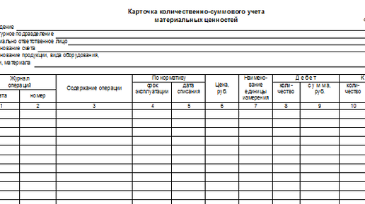 Карточка количественно-суммового учета материальных ценностей по форме 0504041 Карточка количественно-суммового учета, утвержденная приказом Минфина РФ от 30.03.2015 № 52н, используется в государственных структурах для обеспечения аналитического учета следующих активов: Таким образом, ф. 0504041 используется как для собственных активов, так и для тех, которые учитываются за балансом. Данный документ заполняется бухгалтером. Прежде всего, нужно перенести остаток на начало года. Далее в течение периода...
