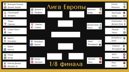 Лига Европы 1/8 финала. Результаты всех матчей. Пары четвертьфиналов