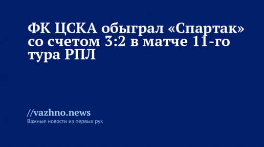 ФК ЦСКА обыграл «Спартак» со счетом 3:2 в матче 11-го тура РПЛ