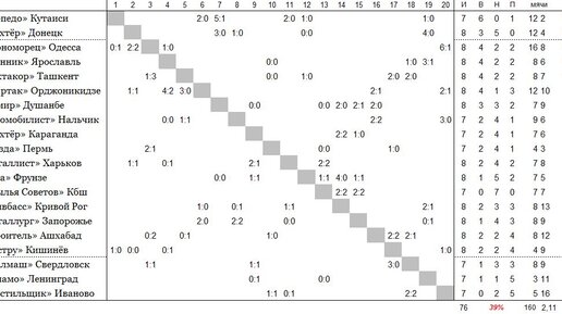 В первых трех матчах стопроцентный результат показало кутаисское Торпедо, а Текстильщик не набрал ни одного очка. Своеобразный рекорд установила куйбышевская команда, завершив первые семь матчей на старте вничью. Но после победы в восьмой игре, Крылья завершили миром еще четыре кряду.
