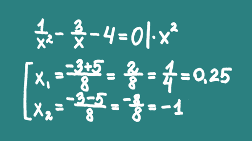 Решим дробно-рациональное уравнение: 1/х^2 – 3/х – 4 = 0