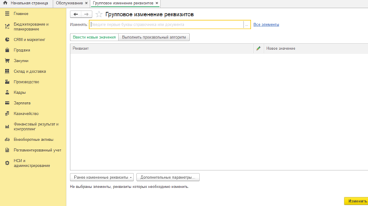 Всем доброго времени суток! В этой статье рассмотрим групповое изменение реквизитов. Для примера будет использоваться демо конфигурация 1С "Комплексная автоматизация". Использование обработки "Групповое изменение реквизитов". _______________________________ Важно: Выполнение операции может закончится ошибкой чаще всего по нескольким причинам: _______________________________ При написании кода используется тот же синтаксис, что и при написании кода в конфигураторе...