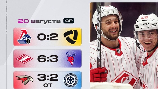 🥅Итоги дня в нашем хоккее🏒 20 августа КХЛ. Хоккеисты "Северстали" оказались сильнее действующих чемпионов, а "Авангард" одержал победу в сибирском противостоянии. "Спартак" разгромил "Торпедо" благодаря хет-трику Буруянова и пяти очкам, набранным Пашиным. ВХЛ. "Звезда" не оставила шансов "Тамбову", выиграв с сухим счетом...