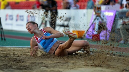 Чемпионат России по легкой атлетике. День второй. Призер Олимпийских игр-2012 Елена Соколова выиграла в прыжке в длину.