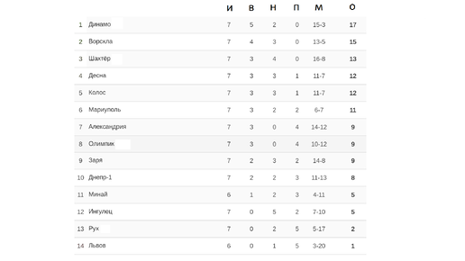 Чемпионат Украины по футболу (УПЛ). 7 тур. Таблица, результаты, расписание.