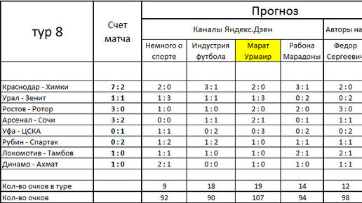 Прогнозы на 9-й тур чемпионата России по футболу от авторов спортивных каналов Яндекс.Дзен.
