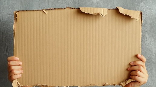 Создано на основе запроса: A pari fo hands holidng up a blank cardboard sign that is slightly ripped at the adges