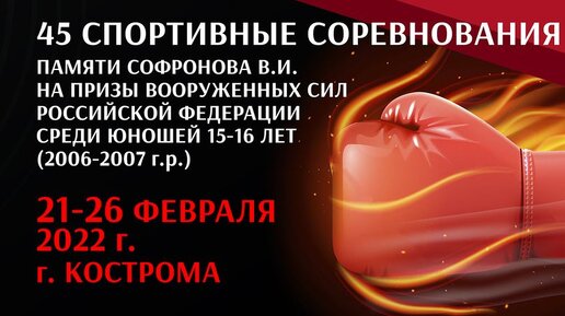 Бокс – один из самых популярных видов спорта в городе Костроме и Костромской области. Костромская школа бокса имеет славную историю и крепкие традиции. Зарождение и становление этого вида спорта непосредственно связано с именем Вадима Ивановича Софронова. Ежегодно в городе Костроме проводились Всероссийские соревнования по боксу памяти Вадима Ивановича. Последние несколько лет, из-за отсутствия достаточного финансирования турнир не проводился. В период с 22 по 26 февраля соревнования, посвященные...