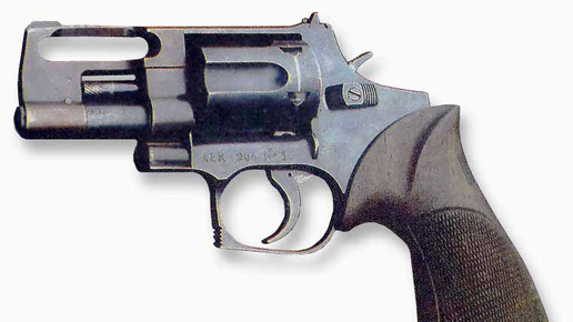 АЕК-906 «Носорог» — российский револьвер, разработанный в конце 90-х годов на Ковровском механическом заводе для нужд милиции. Его уникальная конструкция выделяет его среди собратьев: ствол и фиксатор барабана находятся в нижней части, а ось барабана располагается над стволом. Такое расположение помогает выровнять ось револьвера с ладонью стрелка, что значительно улучшает точность стрельбы. Револьвер разрабатывался под патрон 9x18. Барабан вмещает 6 патронов, что открывает возможности для его использования на охоте или в боевых ситуациях...