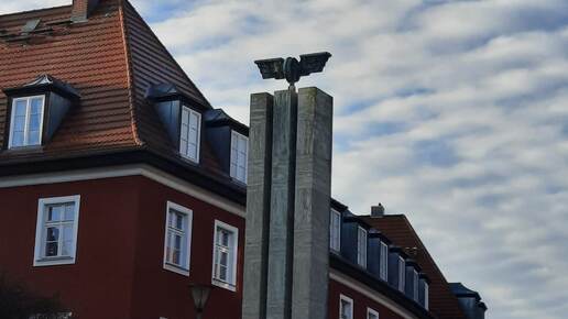 Франкфурт-на-Одере, в отличие от своего западногерманского тёзки, город небольшой. Расположен он на западном берегу Одера, а на восточном – уже Польша. Но так было не всегда. Исторически Франкфурт рос на двух берегах. Само название города означает переправу через Одер. Но в ХХ веке границы в этих местах неоднократно передвигались. От самого железнодорожного вокзала Франкфурта-на-Одере, который связывает восточный город с остальной Германией, можно увидеть вершину необычной стелы. Три струны, над которыми веет что-то крылатое...